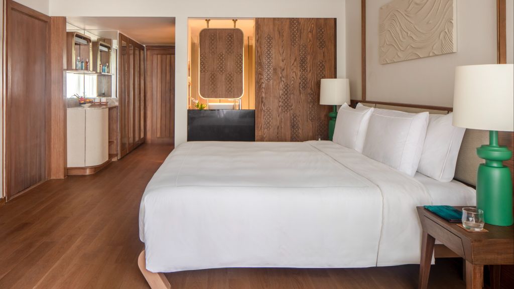 Dotted with pockets of private space for relaxation and calm, garden pool suites come with a private pool of 14 sqm and shaded sundeck nestled in the landscaped gardens. The suite’s open-plan space that opens onto a terrace is designed for tropical indoor-outdoor living, while Nespresso machine and built-in bar with wine fridge provide additional residential touches.