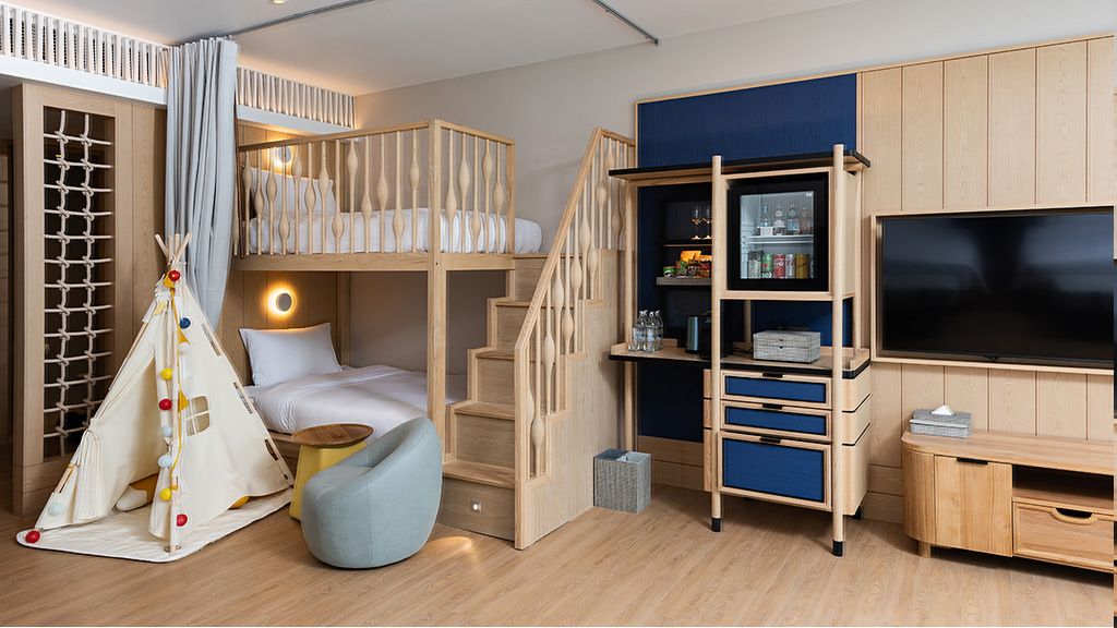 91 SQM Family Pool View Suite with King Bed, Free Wi-Fi, Kids Bunk Beds... Más información