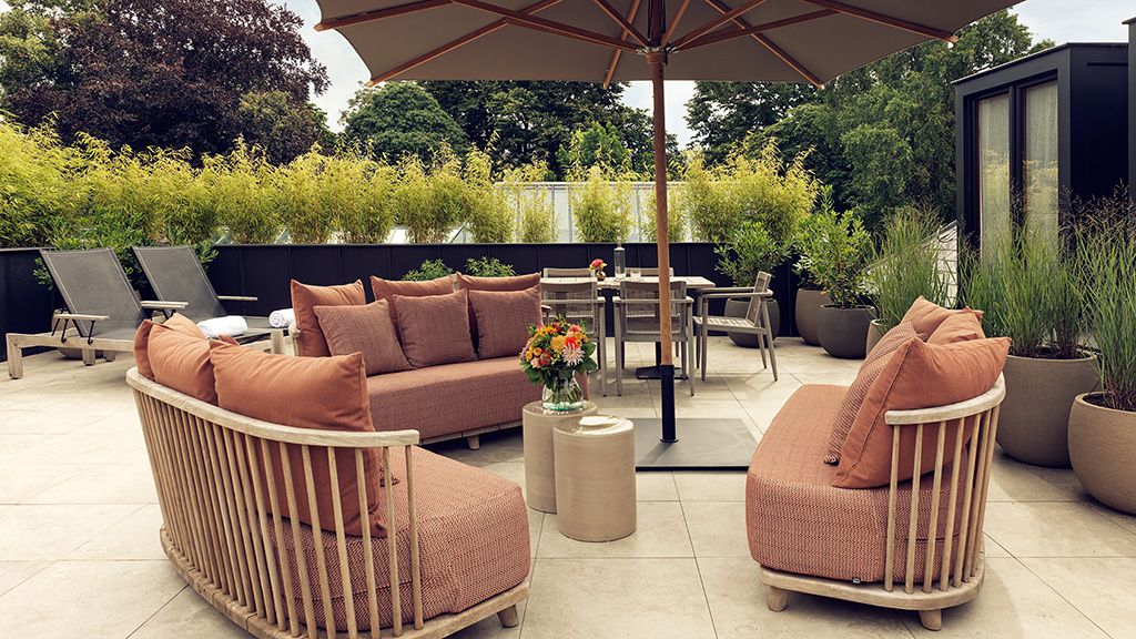 Wake up in your deluxe room with spacious terrace to enjoy an apero or suntan on your private sunbeds. This privileged room features a relaxing sofa and bathroom with separate walk-in shower and bathtub. The room is located on the first floor. This room provides all amenities you may inquire including a minibar and coffee - making facilities. The room is 26 sqm/ 279 sft and offers courtyard and city view. Our guests have free access to the botanic gym and health spa.