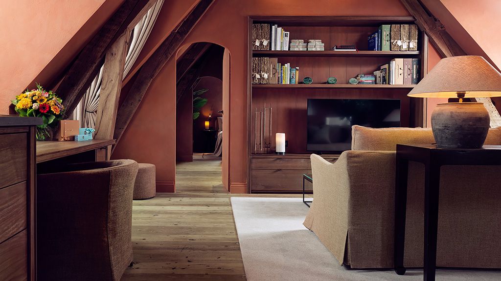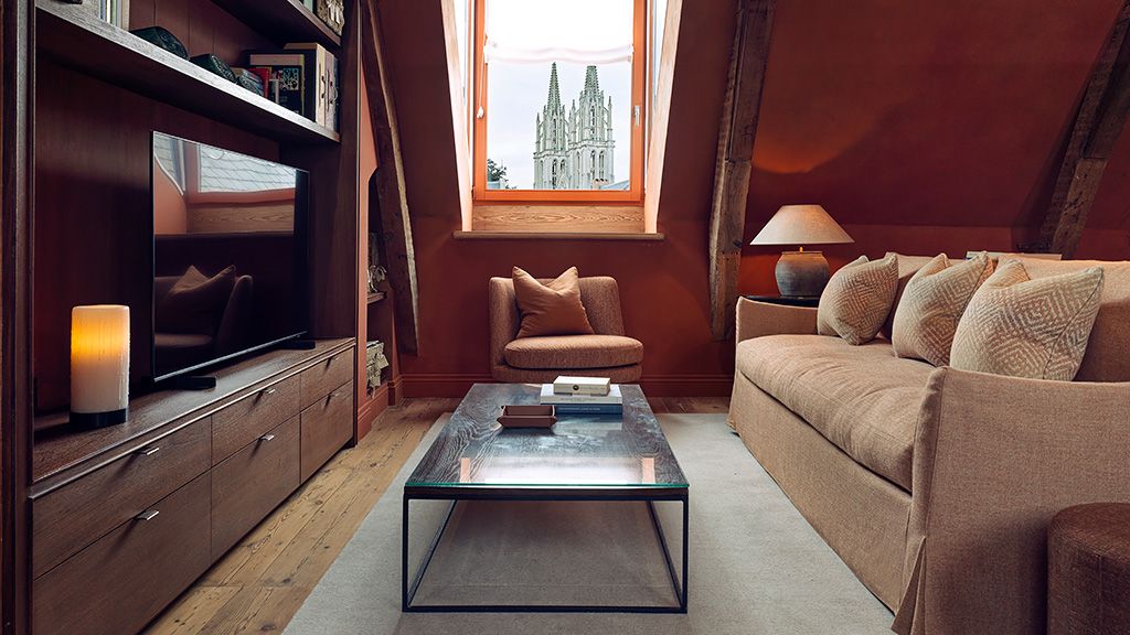 Experience the unique charm of our family duplex, each showcasing its own historical character. In addition to the double bed, the duplex floor with sofabed can accommodate up to 2 children. The suite features a bathroom with rain shower and deep-soaking bathtub. This room provides all amenities you may inquire including a minibar and coffee - making facilities. The room is 40 - 50 sqm/ 430-538 sft and offers courtyard / garden view. Our guests have free access to the botanic gym and health spa.