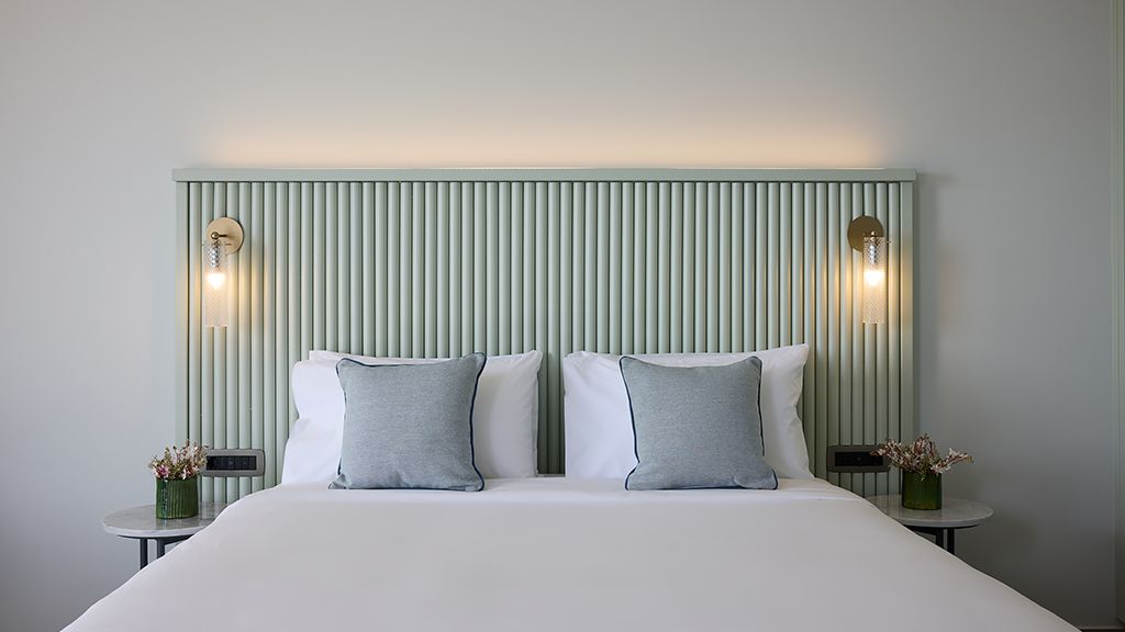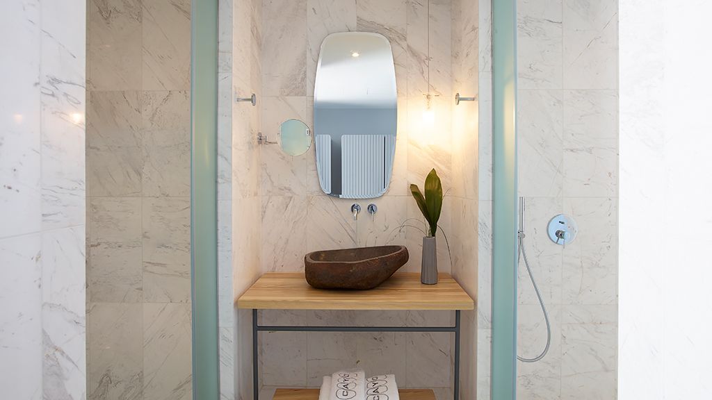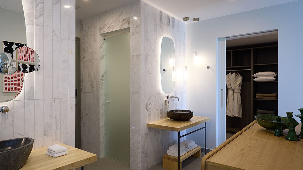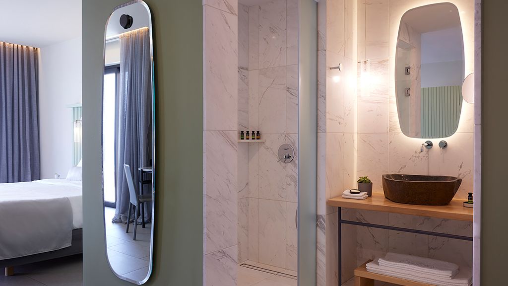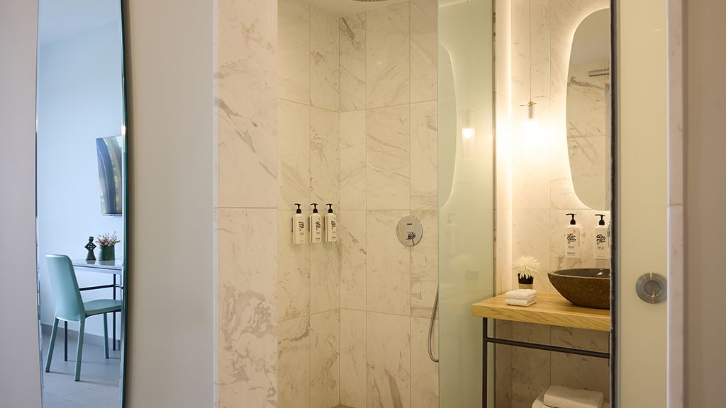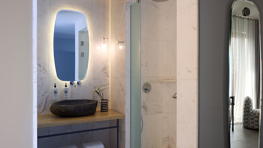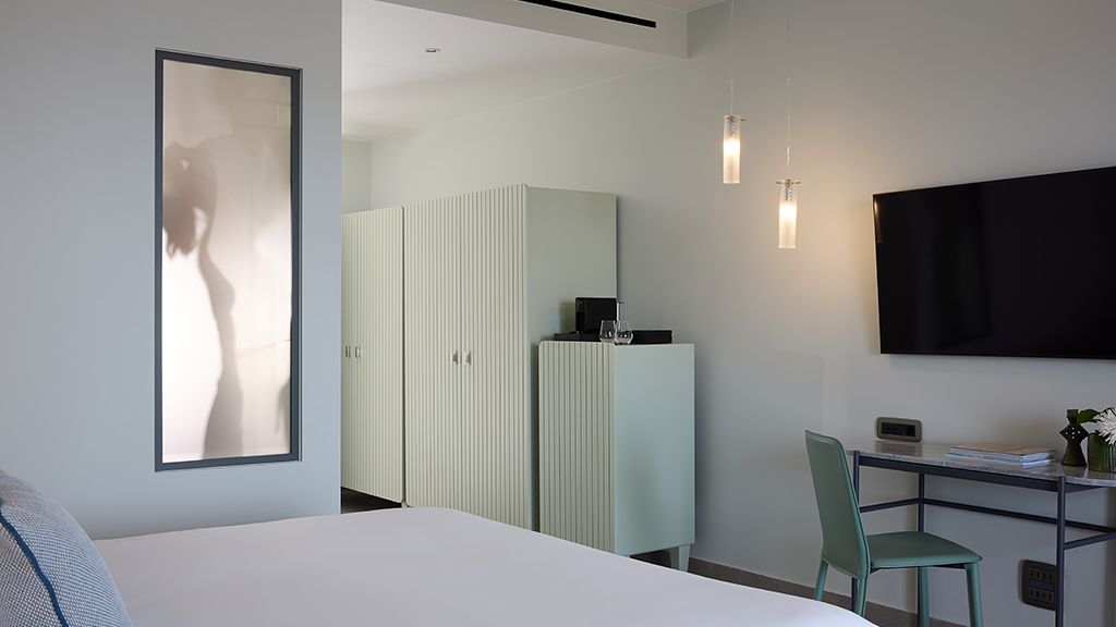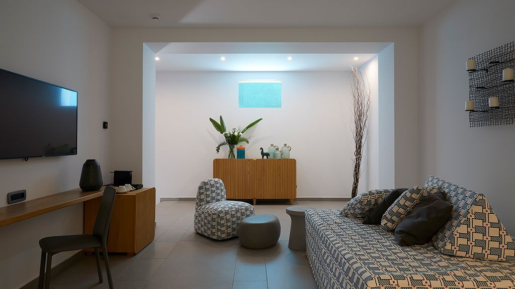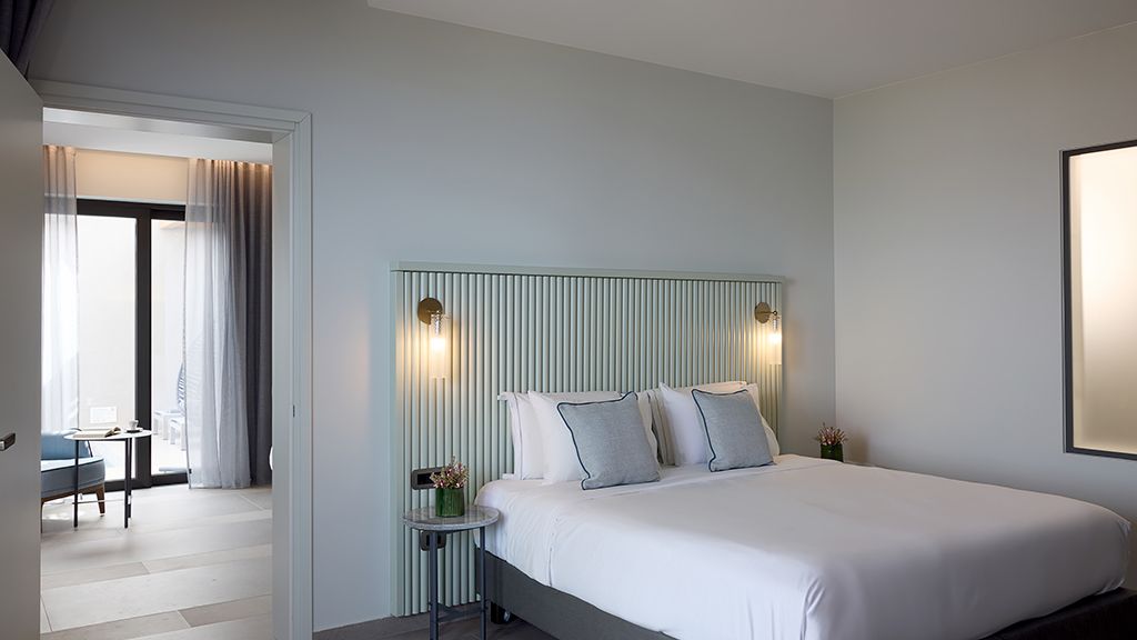 Superior Room with sea view, queen bed, ensuite, Wi-Fi, AC, terrace, minibar and espresso machine.