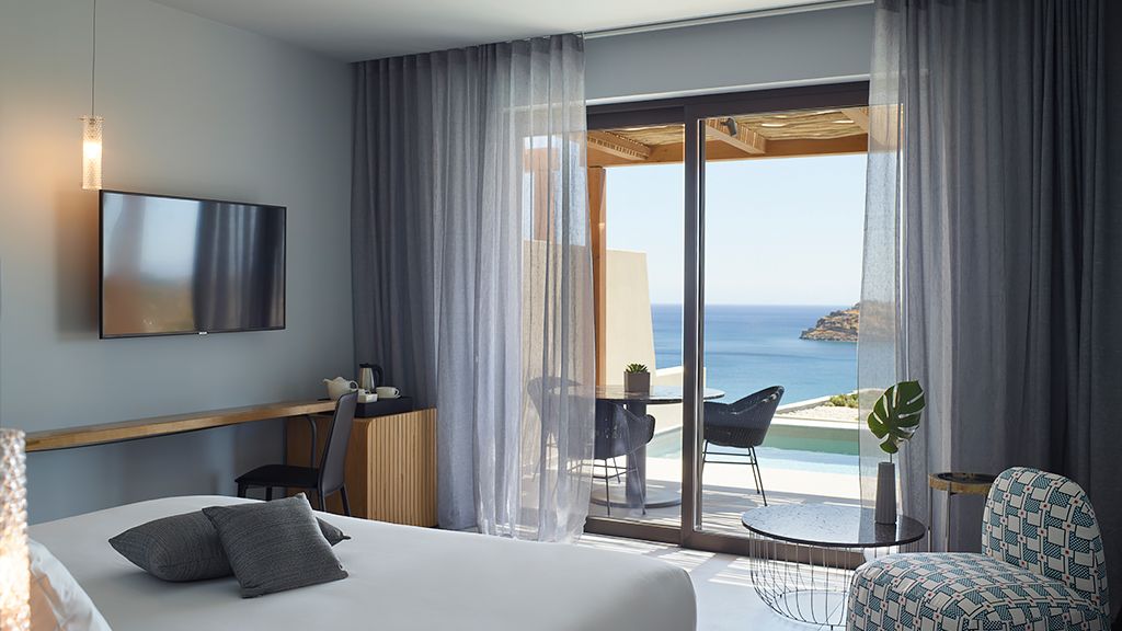 Premium Room with Pool, sea view, ensuite, queen, Wi-Fi, AC, minibar, espresso machine and terrace.