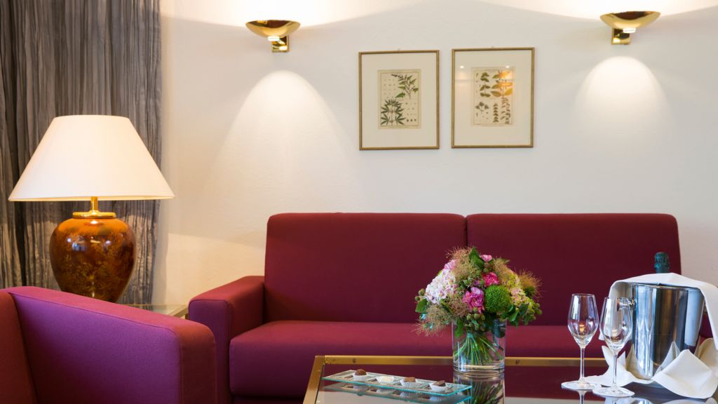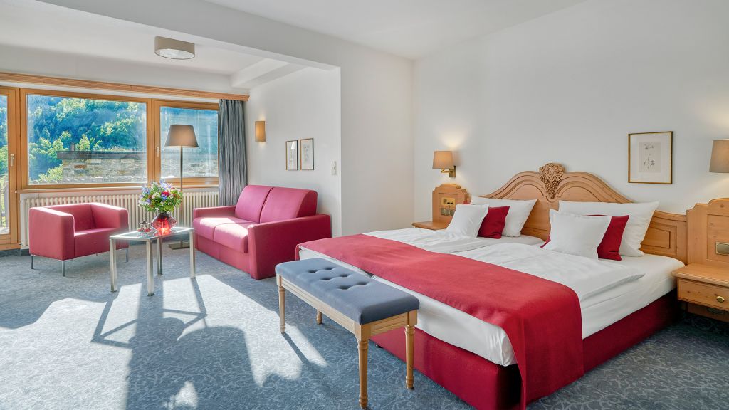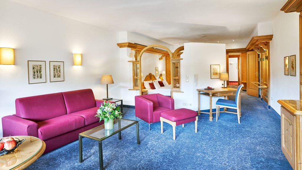 Junior Suite with double bed, sofa bed, Wi-Fi, ensuite, two TVs, safe, minibar and balcony.