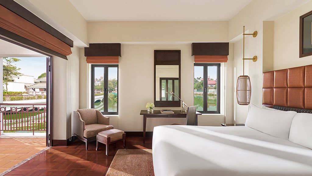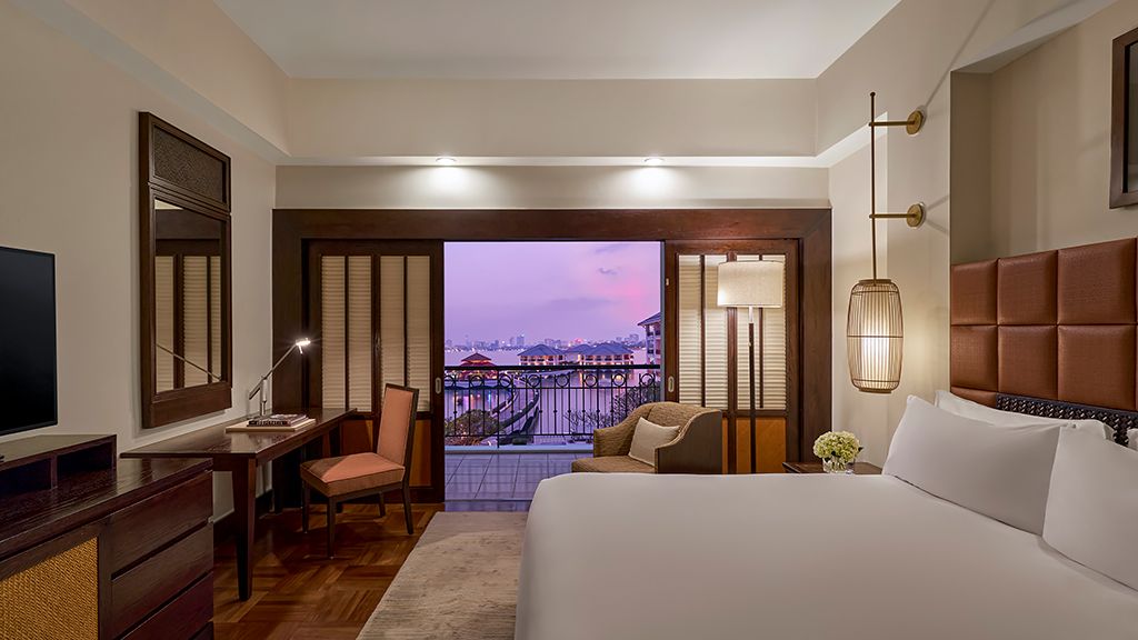 El InterContinental Hanoi Westlake tiene vista a la pagoda del Loto Dorado de 800 años de antigüedad y es un lugar donde puedes sumergirte en la historia antigua de Asia desde tu propio balcón privado.