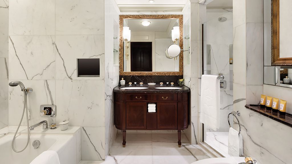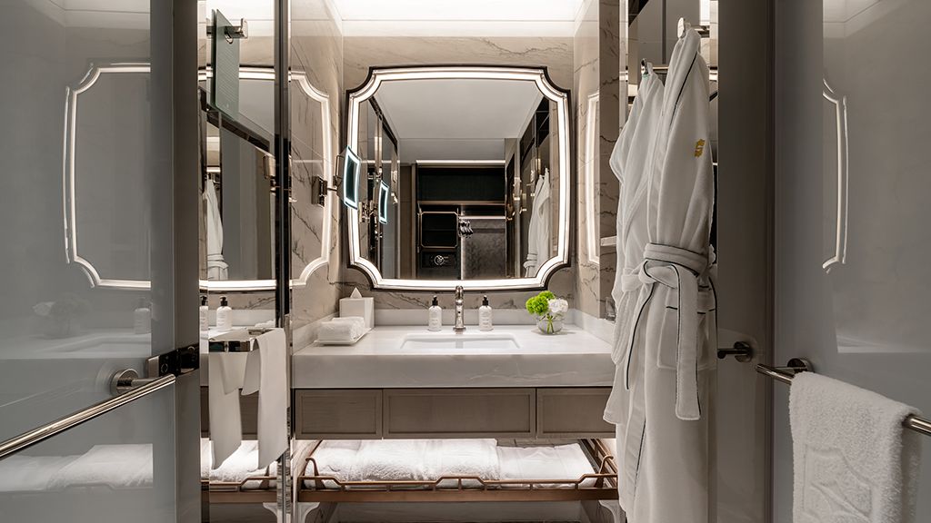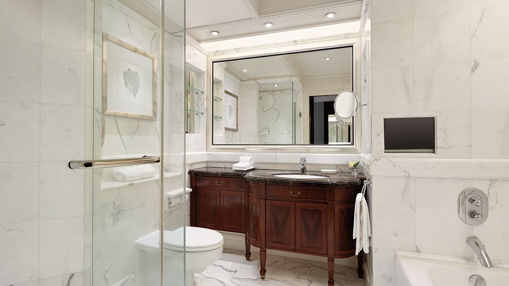 With expansive space to work or relax, Executive Suites feature a bird’s-eye view of lush Hong Kong Park and the exclusive residence areas of Victoria Peak. The master bedroom offers LCD television, DVD player, a hand-painted wall mural and a walk-in dressing area. The separate living room features LCD TV, DVD player, an audio home theater system, an in-house mobile phone, i-Pod docking station and 24-hour butler service. The marble bathroom contains an LCD television, a bidet, a separate glass shower stall, a soaking tub and luxurious toiletries. Suite can be connected to an additional room for a two-bedroom suite. Complimentary broadband Internet access.