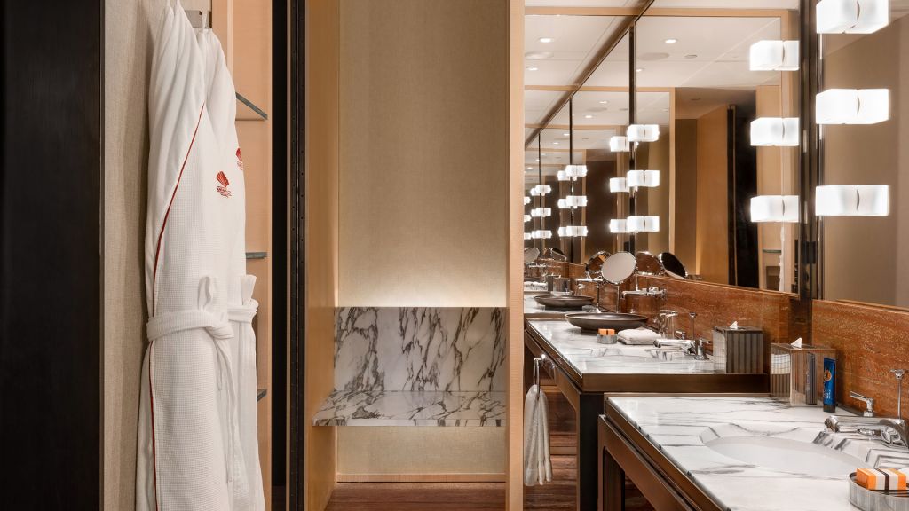 Enjoying an enviable location on the southeast and northwest corners of the hotel, these rooms feature floor-to-ceiling windows revealing panoramic city views. Rooms also have spa-like bathrooms, divided into two separate zones.