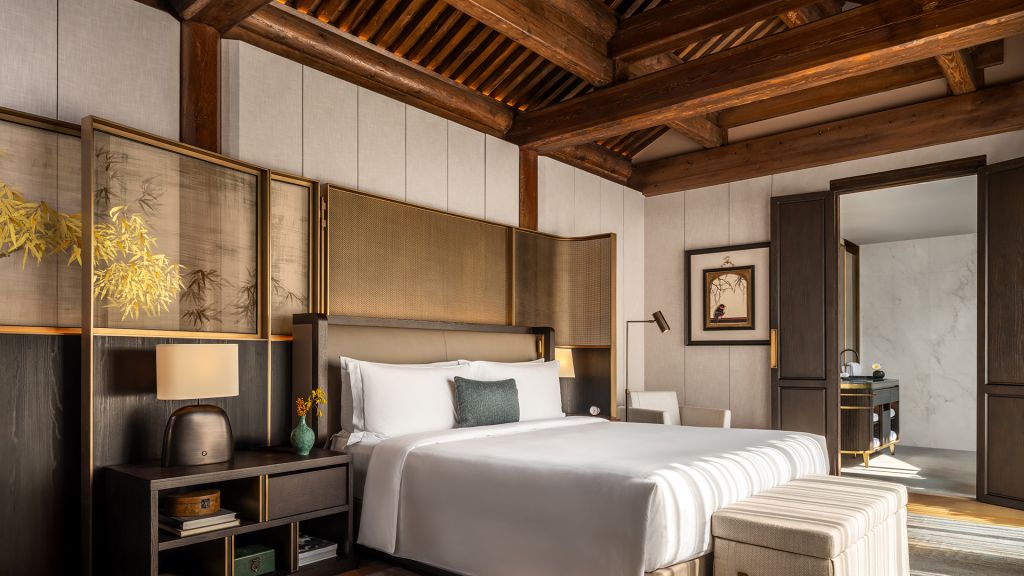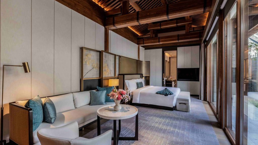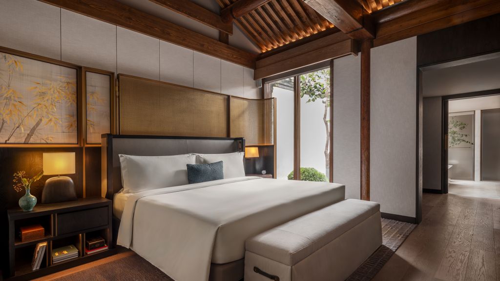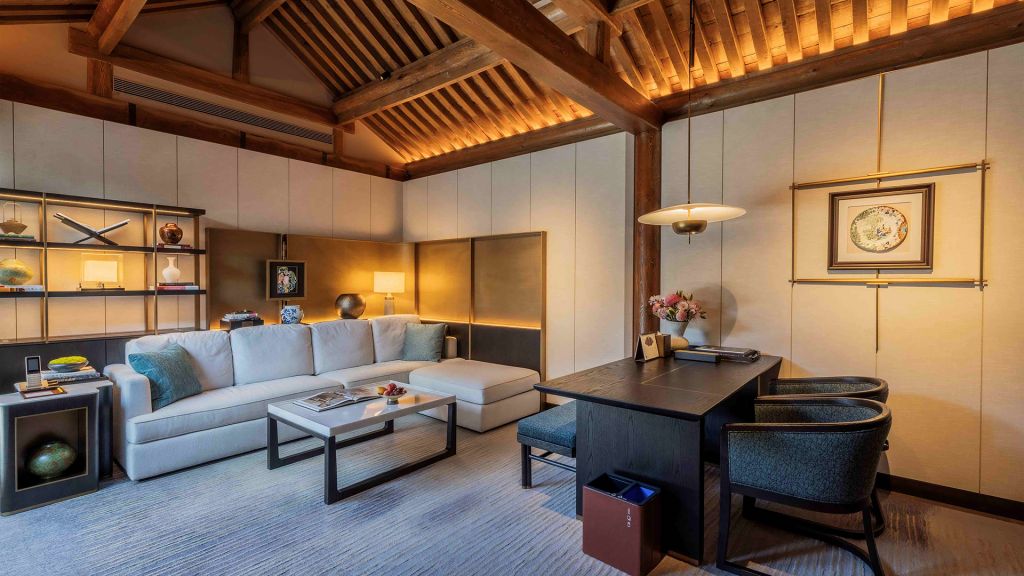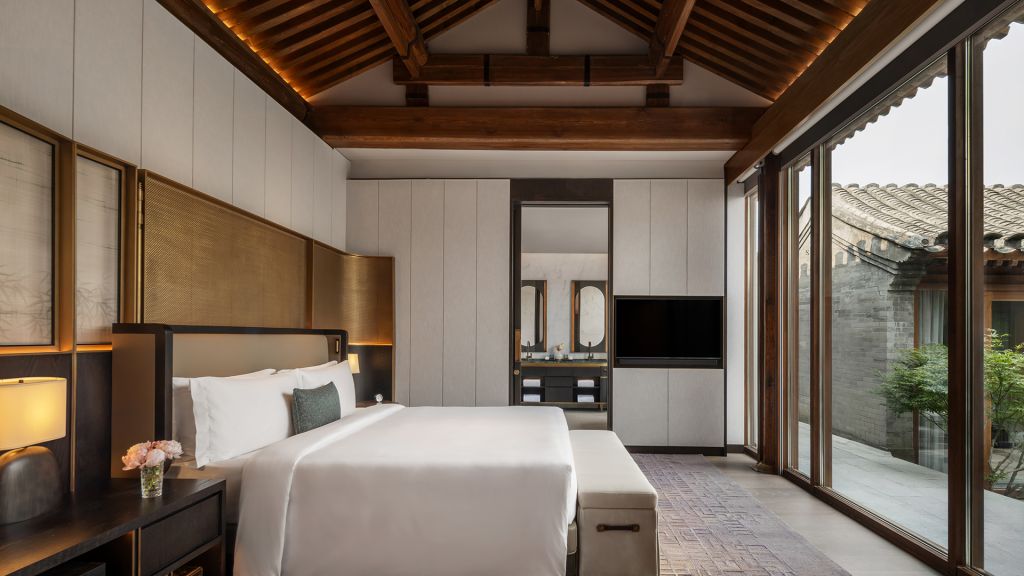 This two-bedroom suite with one king bed and two twin beds surrounds an expansive central courtyard which is ideal for refined relaxing or hosting memorable events. Interiors reflect beijing’s rich art and culture traditions.