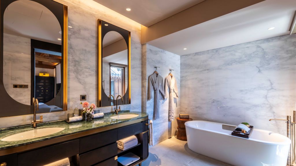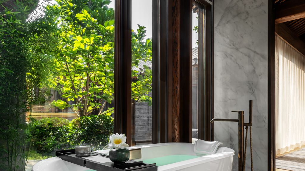 These sublime one-bedroom courtyard houses start from 228 sqm and offer spacious living and dining areas overlooking the central courtyard, a perfect entertaining space that lets guests experience local hutong life and culture.
