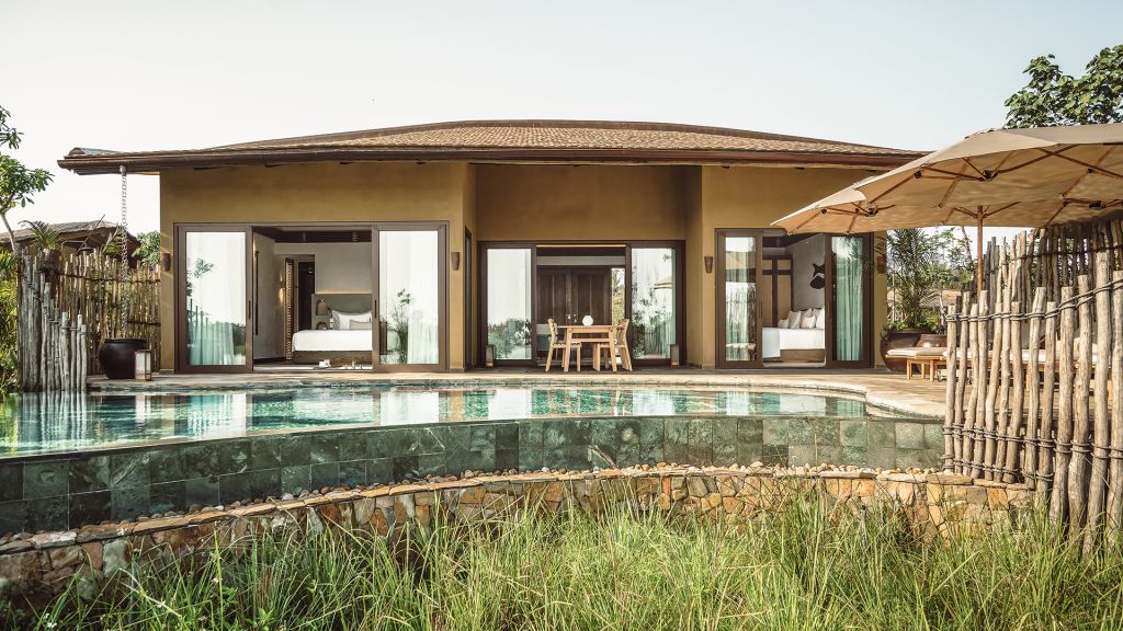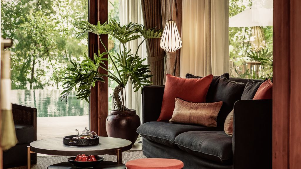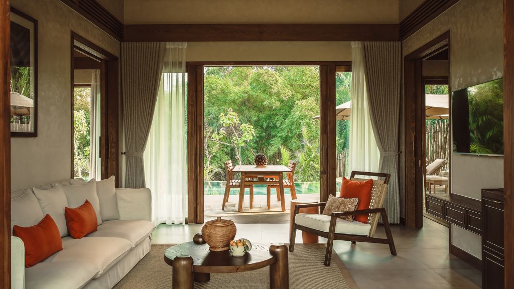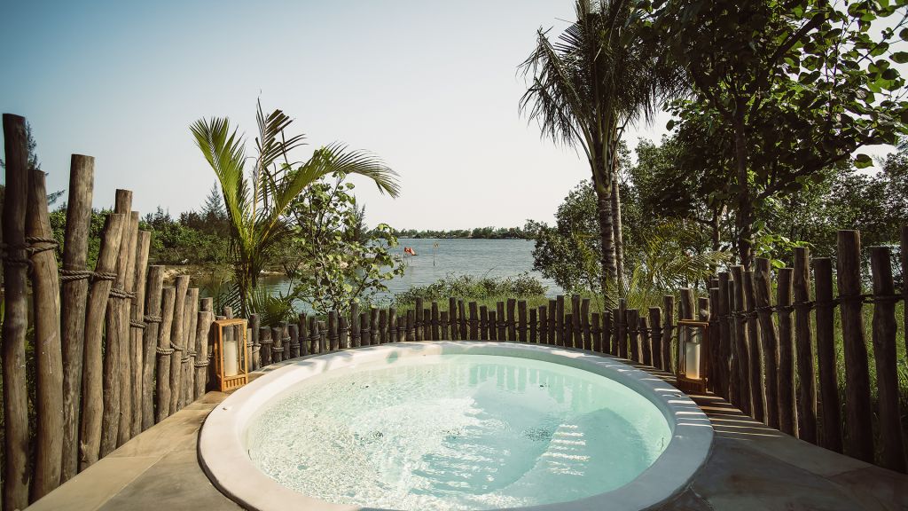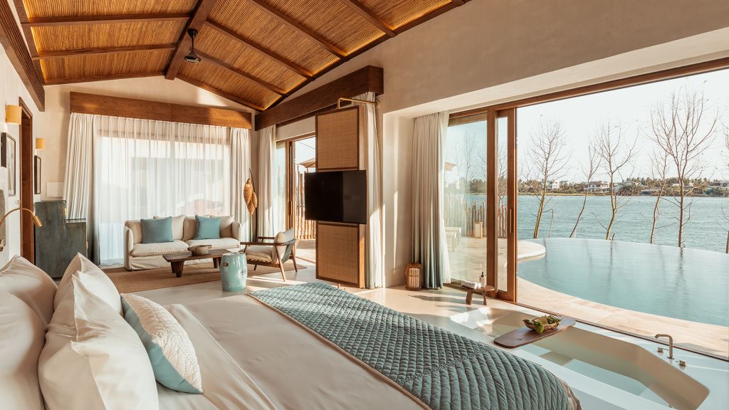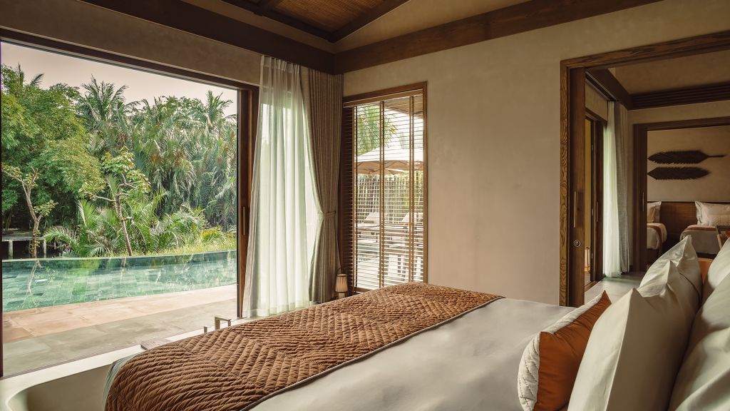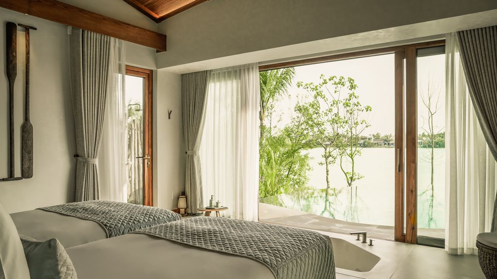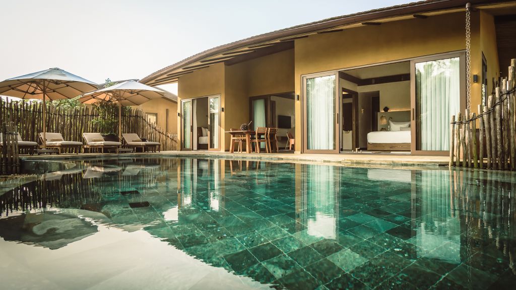 Las linternas danzan sobre el río Thu Bon mientras surge Namia River Retreat, una tranquila joya de los canales de Hoi An. Las hojas de las palmeras se mecen con la brisa, el aroma de las flores tropicales flota en el aire y la luz del sol se refleja en las piscinas privadas, insinuando la calma prometida.