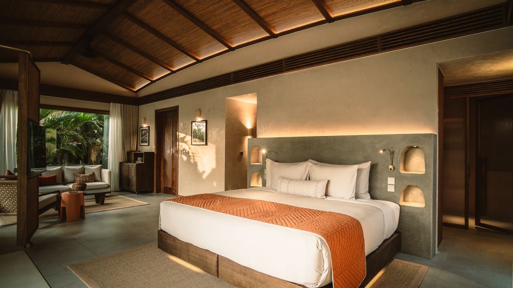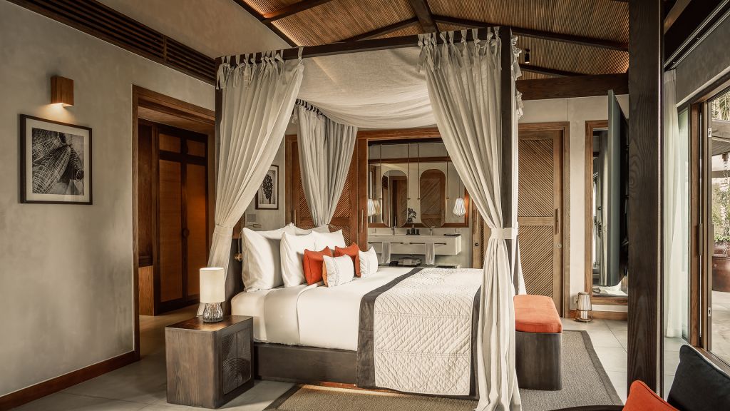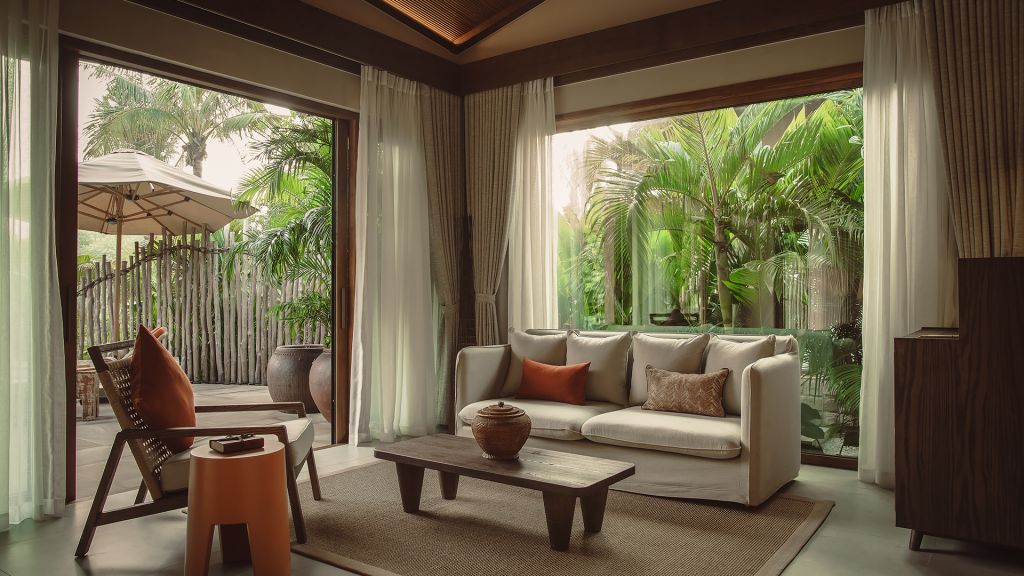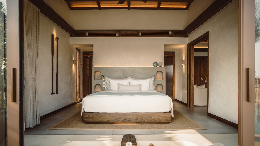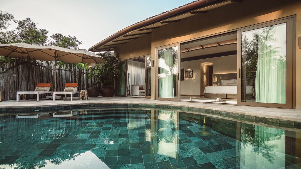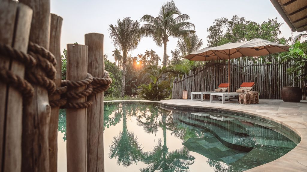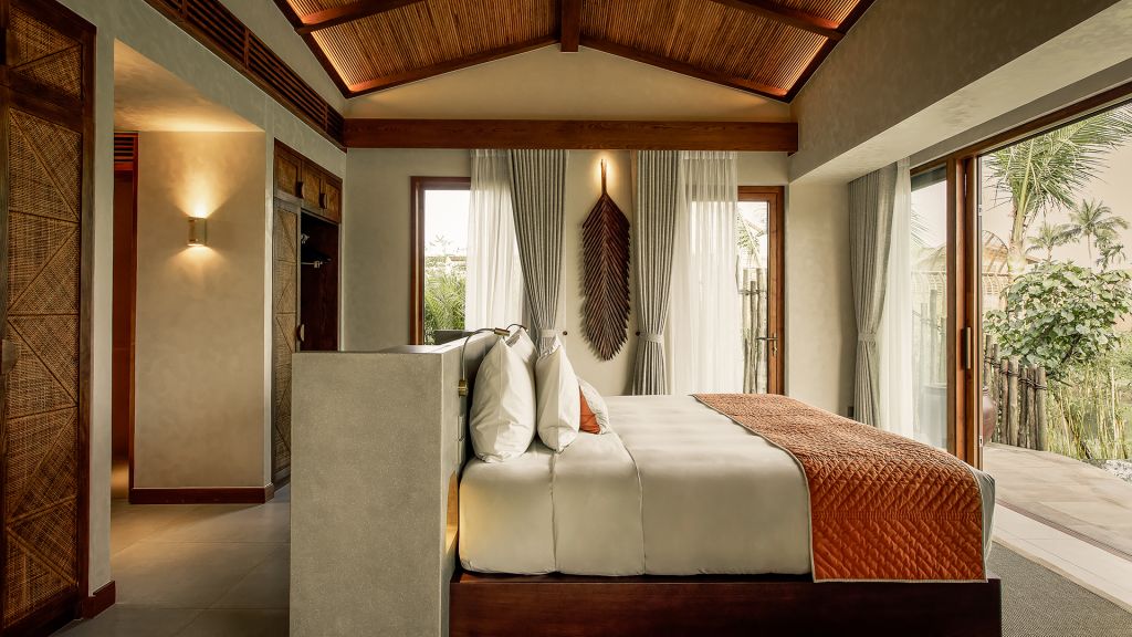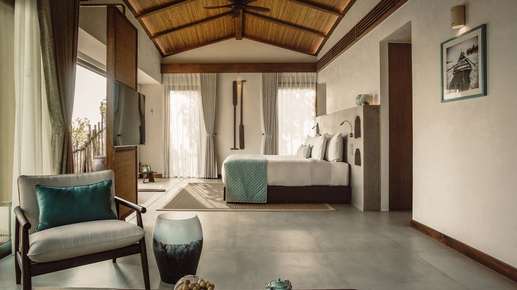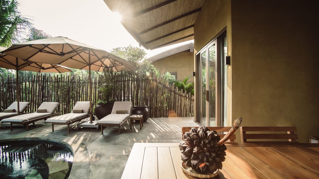 Las linternas danzan sobre el río Thu Bon mientras surge Namia River Retreat, una tranquila joya de los canales de Hoi An. Las hojas de las palmeras se mecen con la brisa, el aroma de las flores tropicales flota en el aire y la luz del sol se refleja en las piscinas privadas, insinuando la calma prometida.