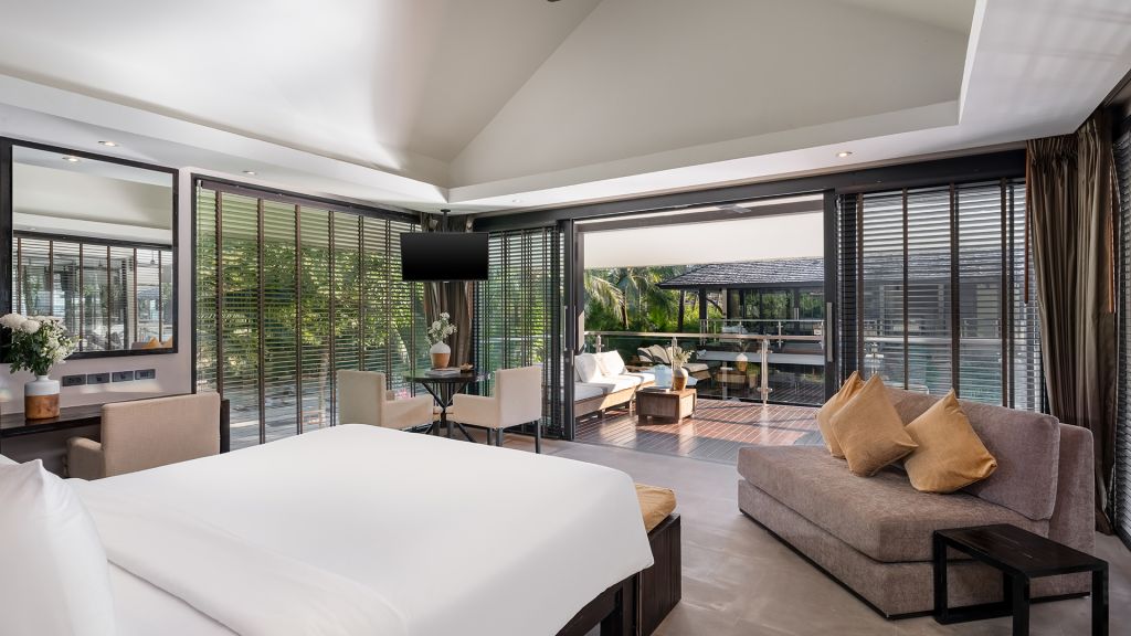 Our upper-floor luux suite with pool view offers stunning views of the resort’s iconic 75-meter pool, with private open balconies that overlook the breathtaking angthong national marine park and koh samui’s famed west coast sunsets.