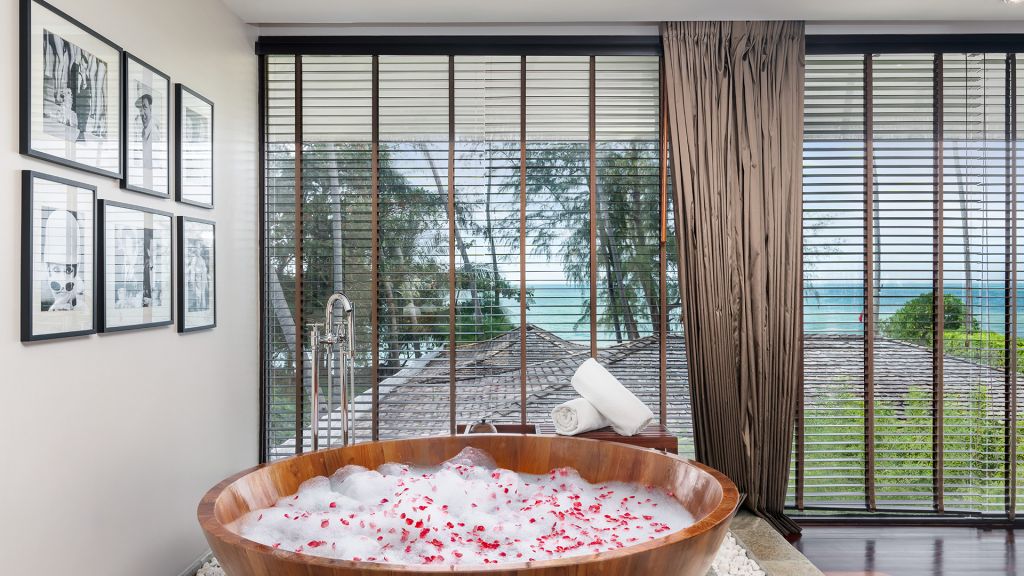 Immerse yourself in island luxury in our exclusive upper-floor luux ocean view penthouse suite, perfectly perched for panoramic views of the turquoise ocean and our sprawling 75-meter pool. Inspired by koh samui’s tropical charm, this suite features a spacious, private living room, a beautifully crafted circular wooden bathtub for a true island escape, and two private balconies that reveal sweeping views of angthong national marine park and koh samui’s legendary west coast sunsets.