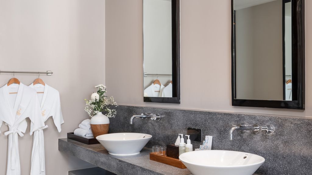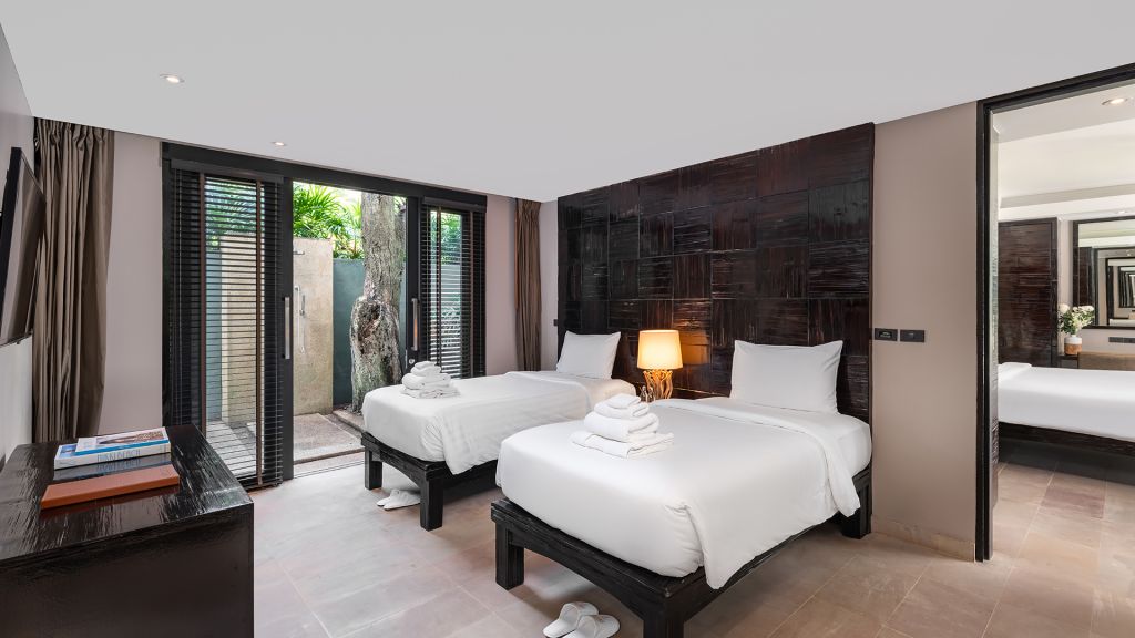 Two Bedroom Suite. One King size bedroom with a connecting 25 m2 Twin bedroom sharing one bathroom. Located on the ground floor, our 8 x 95 m2 Chic Pool Suites enjoy direct access to Nikki Beach signature 75 m long swimming pool, featuring private open terraces, King size bed, two Twin beds with our signature Nikki Beach bedding, ensuite bathroom with Aromatherapy bath products, and MyBar (Nikki Beach Resort selection).