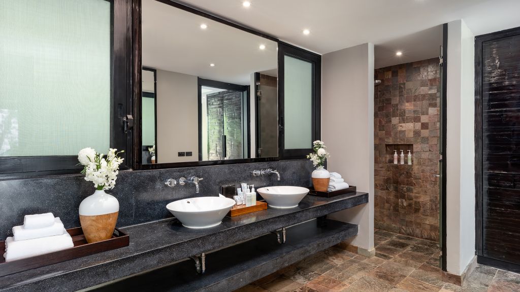 Two King size bedrooms with a connecting 25 m2 / 270 ft2 Twin bedroom sharing two bathrooms. Located on the ground floor and spread over 170 sqm of private living space, these 8 Pool Access 3-Bedroom Family Suite enjoy direct access to Nikki Beach signature 170 m2 / 1830 ft2 long swimming pool, featuring two private open terraces, King size bedrooms and connecting Twin bedroom with our signature Nikki Beach bedding, ensuite bathrooms with Aromatherapy bath products, and MyBar (Nikki Beach Resort selection). (3 bedrooms sleep 6).