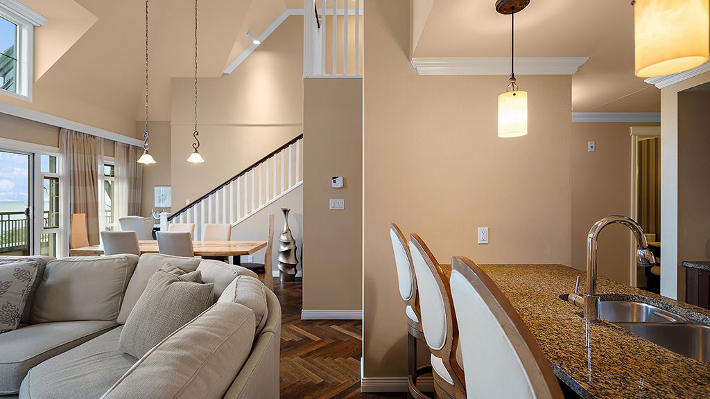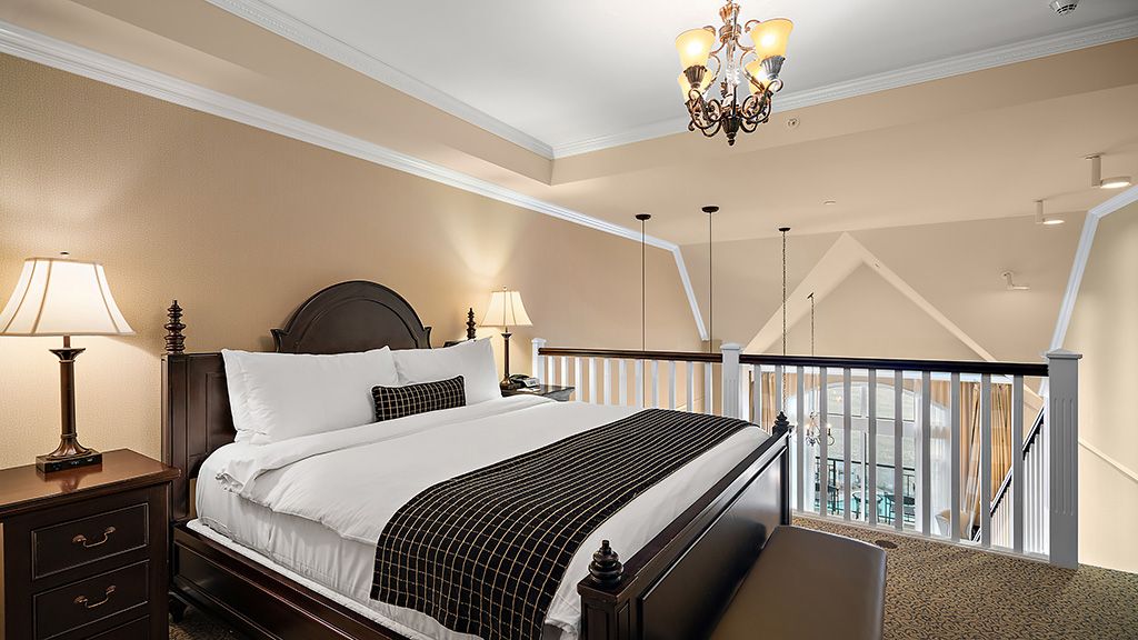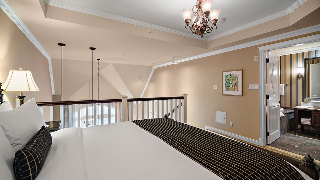 Our Penthouse Suites showcase stunning views from a top floor, two-level accommodation complete with two bathrooms, a loft bedroom, and a full-kitchen. It’s over 1,072 sq ft. of luxury living.