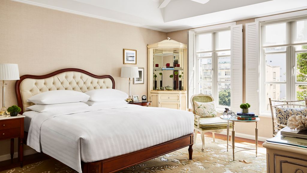 Admire the wooden floors and custom-designed carpets within this room, also known as Park Room Garden View, offering 34 sq m (365 sq ft) of space with one king bed, a rainfall shower and a marble bath.