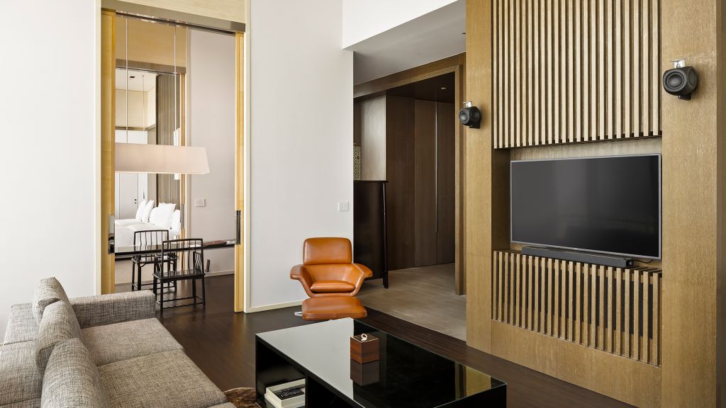 Entertain in this spacious high-floor space at 180 square meters while overlooking the Lujiazui area via the floor-to-ceiling windows from the room. This luxury suite features the main bedroom with two king beds, a dining area curated with handcrafted pieces, a large living room, and a residentially designed study room.