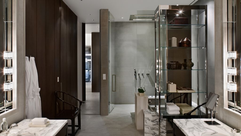 Gaze out at the views of Shanghai cityscape inside this up to 80-square-meter residential-inspired room, furnished with one king bed, a contemporary Chinese-style table ideal for working or dining, a walk-in closet, a separate powder room for privacy with a Washlet, and a deluxe bathroom with a walk-in rain shower and deep soaking tub.