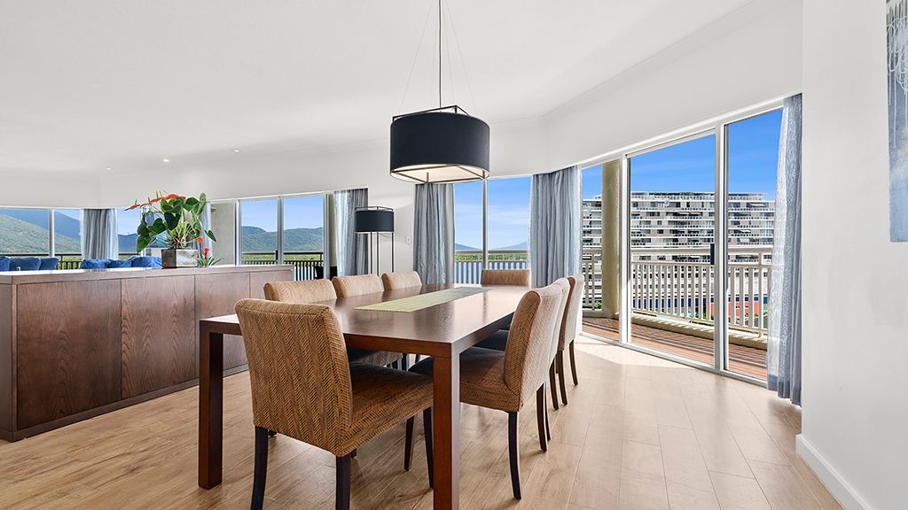 Features a King bed, bay/city views, Jacuzzi bath, kitchen and balcony.