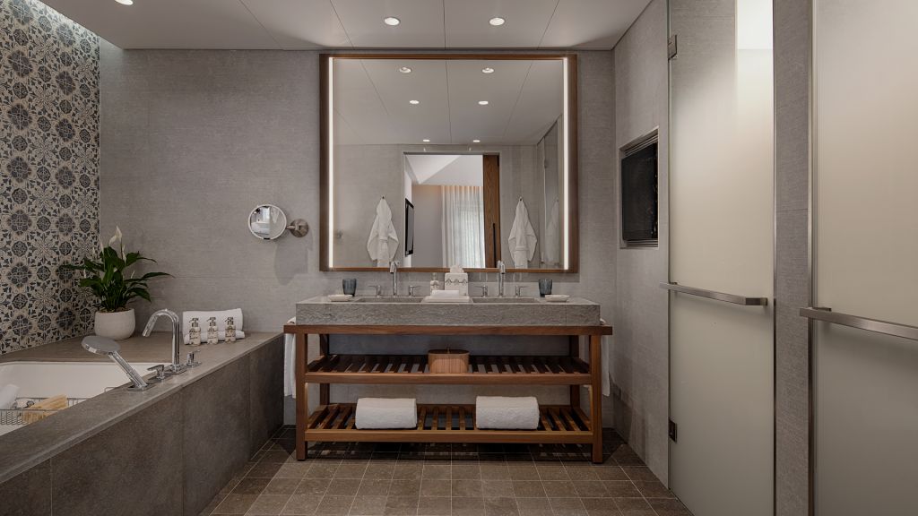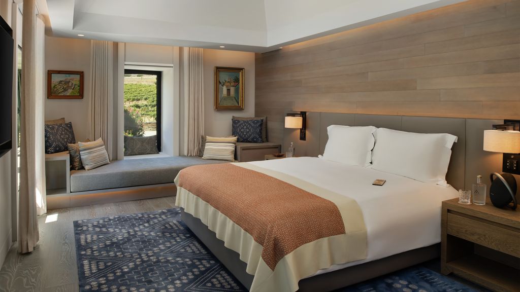 Located in the vineyard wing on the fourth floor, Terrace Suites feature comfortable reading and sitting areas, with an oversized ottoman sofa indoors and an expansive outdoor deck furnished with generous seating. A king-size bedroom and indulgent bathroom set the tone. Enjoy private dining in your dedicated dining area, and soak up the inspiring vineyard views.