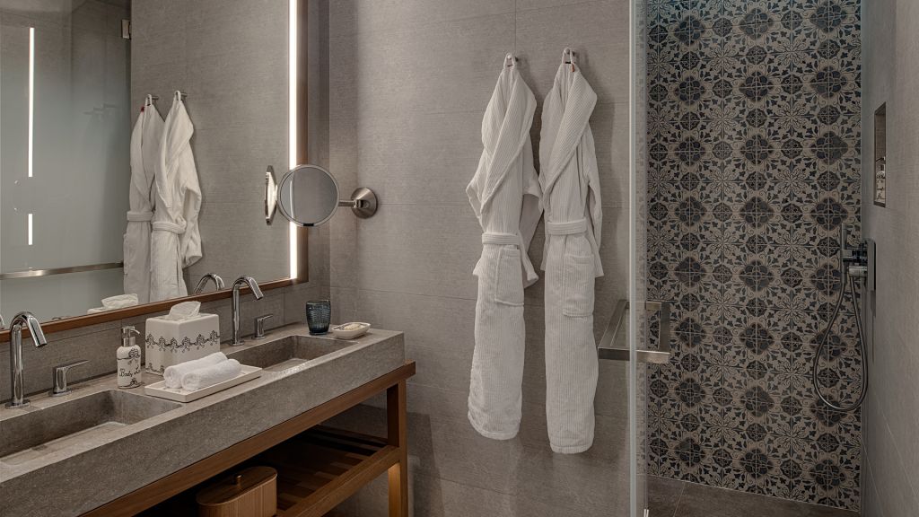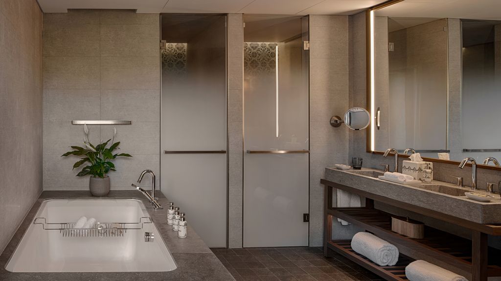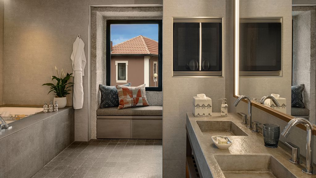You don't have to look hard to see the hero feature of this Portugal suite; it offers one of the best views of the Douro River! The comfortable living room has panoramic windows and there is also a spacious bathroom with double sink and separate bathtub and shower.