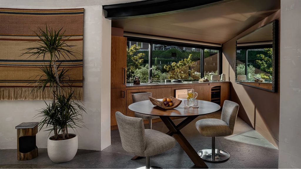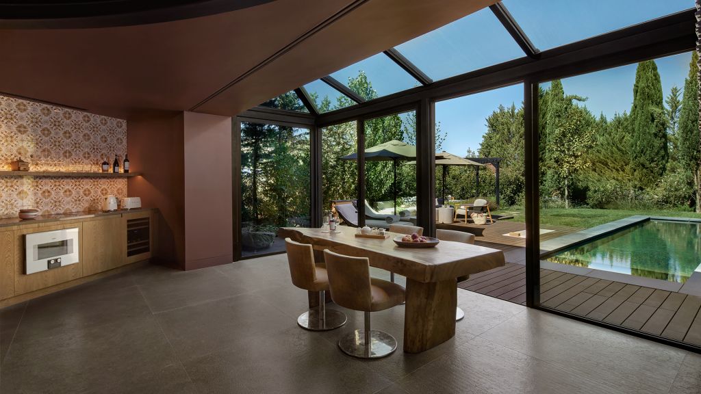 Located in an immaculately refurbished wine lodge, there are five Valley Suites, three on the ground floor and two on the floor above. All have a spacious living room and a fireplace and some have a terrace or a balcony or a bathtub. One of the suites has a fully equipped kitchen. A shared lounge with a fireplace is the perfect meeting point for an afternoon tea or an after-dinner drink. Outside there is a shared garden with terraces and shaded gazebos and a shared heated pool and vitality pool.