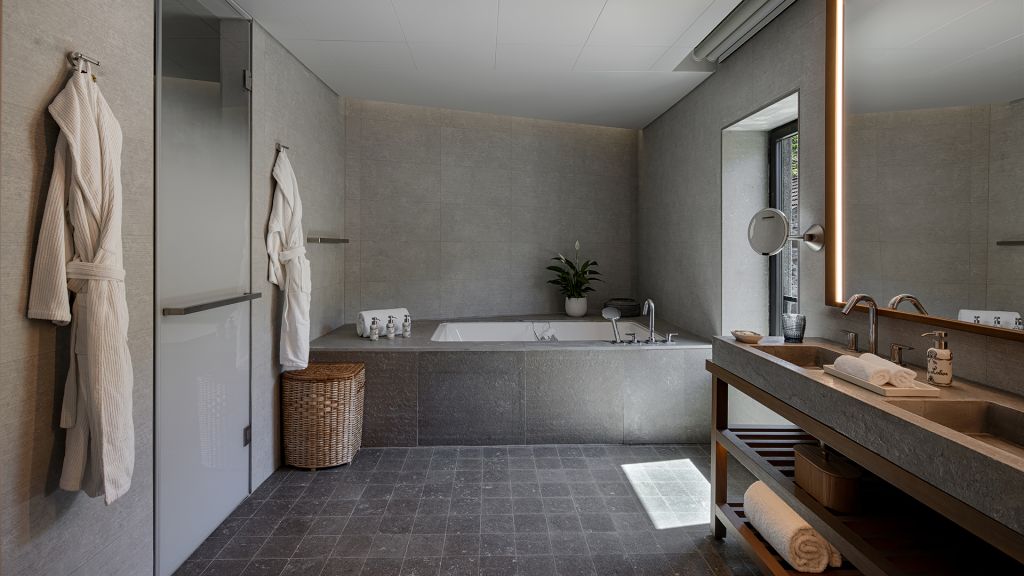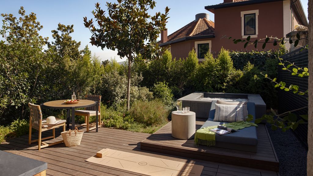 Located on the top floor of the vineyard wing and overlooking the beautiful Vale Abraão valley, these two rooftop suites at Six Senses Douro Valley enjoy total privacy and a very comfortable and contemporary atmosphere. One terrace adjoins the living/dining rooms, and a private wooden bridge connects it to a cozy garden deck with daybed and hot tub, perfect for moments of relaxation and meditation